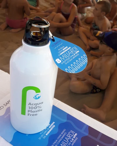 Sadesign ha realizzato migliaia di borracce che sono state distribuite da altrettanti volontari in molte spiagge dell’Emilia-Romagna.