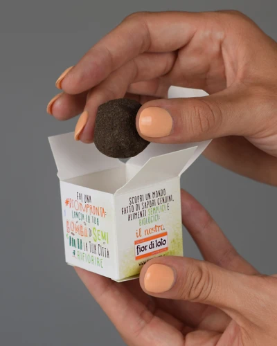 La Bomba di semi è un articolo originale composto da semi, torba e polvere di argilla che può essere “lanciata” direttamente sul terreno. Alla prima pioggia esploderà una bellissima distesa di fiori.