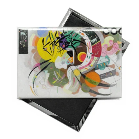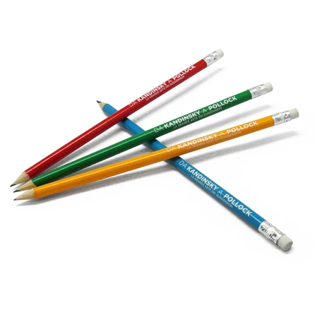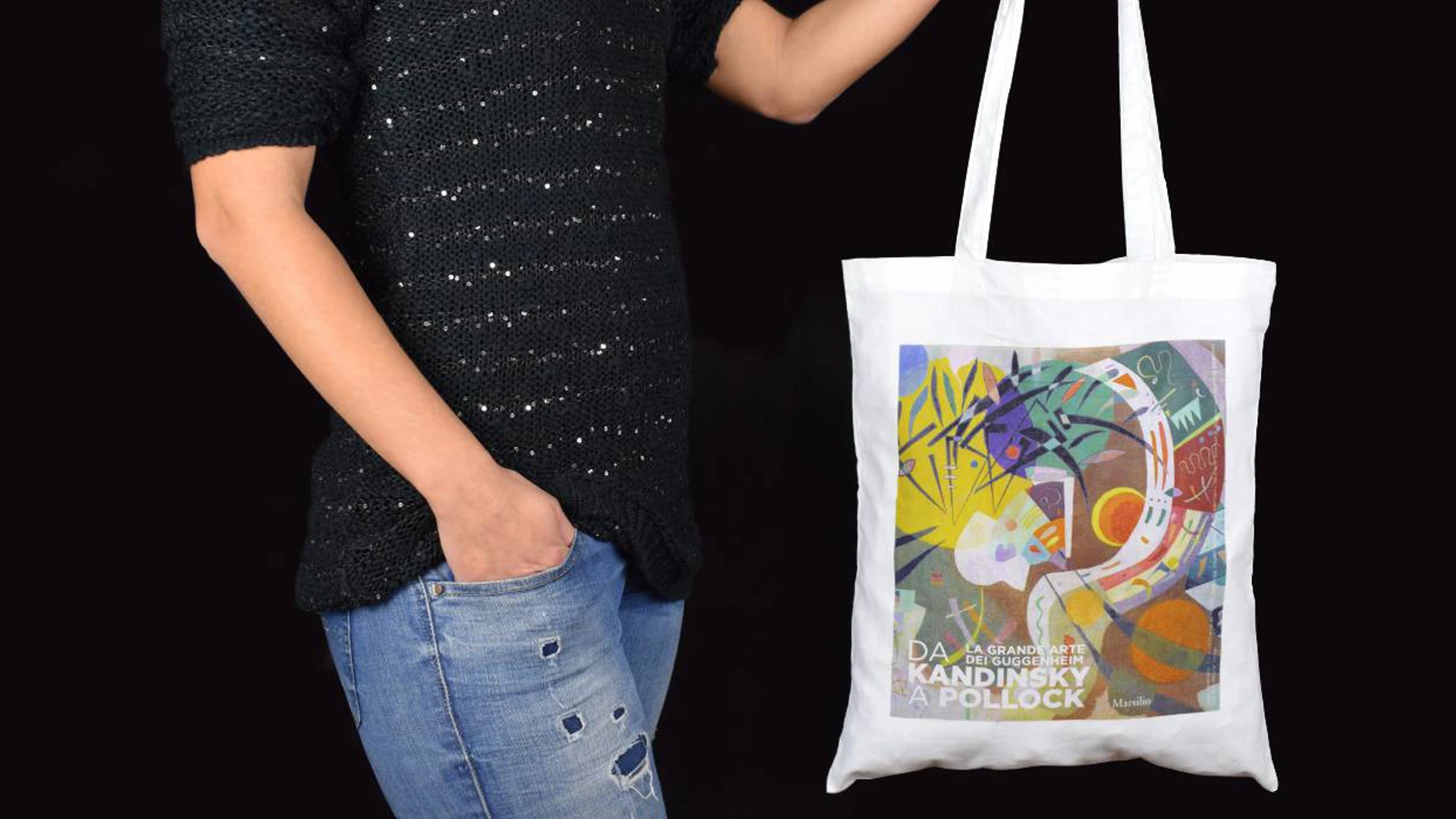 Abbiamo realizzato una serie di magneti personalizzati con alcune delle opere più famose tra cui L.H.O.O.Q. da Boîte en-valise di Marcel Duchamp o Curva Dominante di Kandinsky, delle matite promozionali di molti colori differenti e delle shopping bag in cotone con la famosa opera di Kandinsky.
